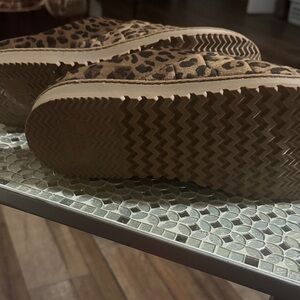 Chic leopard print slippers. Cozy and stylish. Ideal for lounging.