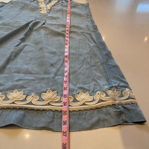 Tommy Bahama Chambray Embroidered Halter Dress with Detailing, Tencel, Size M