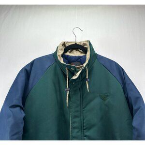 California Imperial Bomber Jacket Men L Zip Up Quilt Lined Colorblock Blue Green