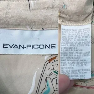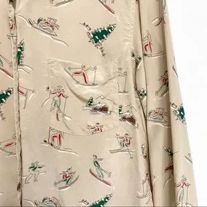 vintage | evan piccone skiing skating winter fun print silk blouse m