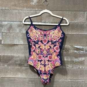 Boden paisley blue and pink one piece padded adjustable strap swimsuit size 10