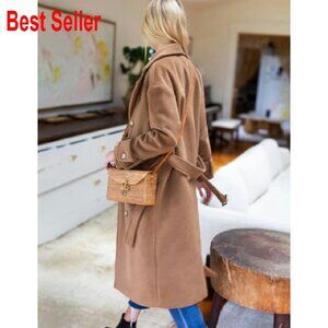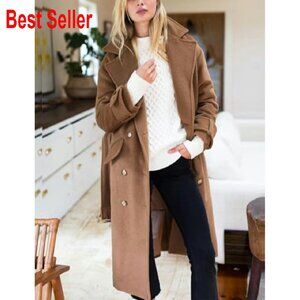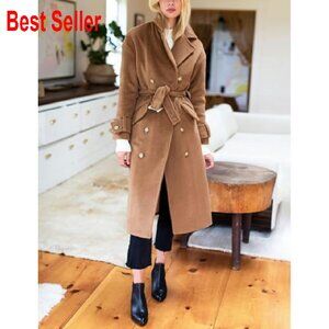 Wool Trench Coat Classic Double Breasted Oversized Chic Fall Winter Peacoat
