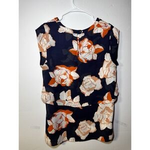 Cabi Women's Floral Print Layered Double Layer Blouse Top Polyester Size M
