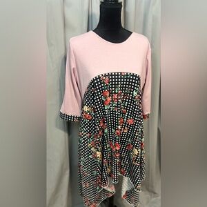 Chic and stylish women's top featuring a floral design. The pink and black color combination adds a touch of elegance. Perfect for any occasion.