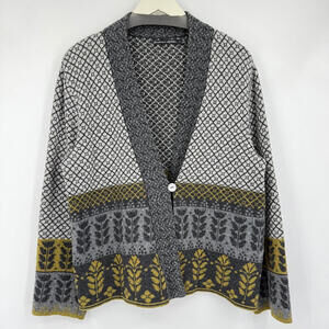 Women's Gudrun Sjoden Gray & Green Wool Blend Patterned Cardigan Medium