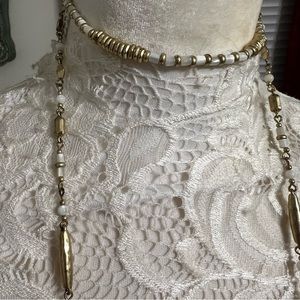 Lucky Brand necklace gold and white beads tassels necklace costume jewelry