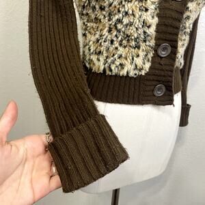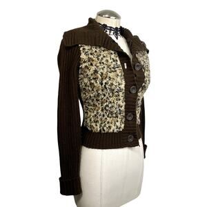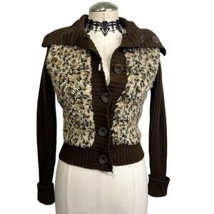 Vtg Y2K Cheetah Print fuzzy Knit Grunge Punk Collared Sweaer Jacket Sz Small