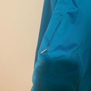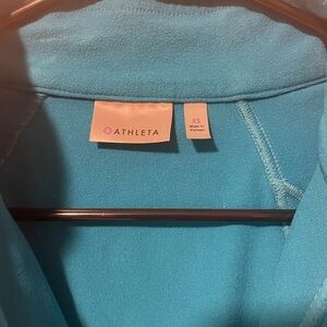 EUC Athleta 1/2 zip pullover running top. Size XS, but measures/fits like a small. Pretty turquoise color with reflective detail, a pocket for your keys, warm, fleecy inside, and mesh material on the lower back for temp control. All items from a dog friendly home and ship next biz day.