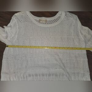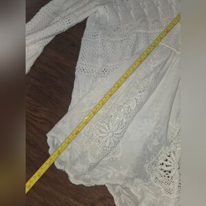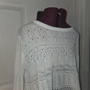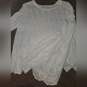 Altar'd State Bell Sleeve White Cotton Eyelet Crew Neck Scalloped Hem Sweater