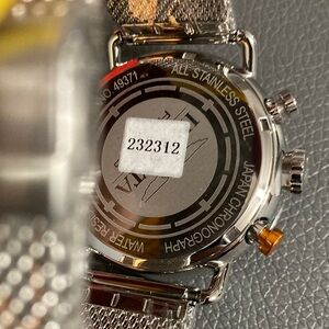 Bold Invicta watch with orange accents. Features a textured gray dial and chronograph functions.