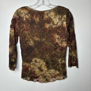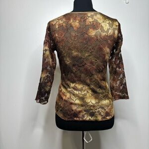 Cato Sheer Floral Lace Mesh Top Women’s S Brown Green Gold Lined Body Fairy Y2K