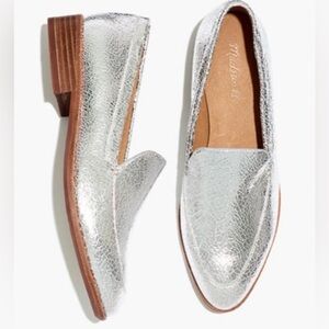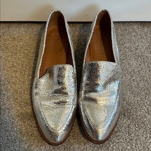 EUC Madewell Frances Metallic Silver Crackle Leather Loafer size US8