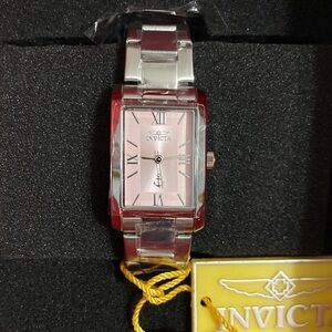 Chic Invicta watch with a polished silver band and a soft pink dial. Ideal for everyday elegance.
