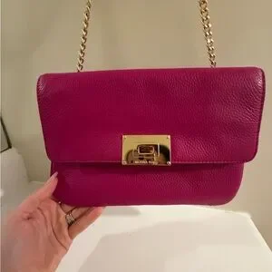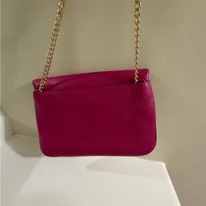 Stylish fuchsia leather bag by Michael Kors. Features a gold-tone chain strap and clasp. Perfect for any occasion.