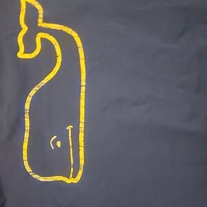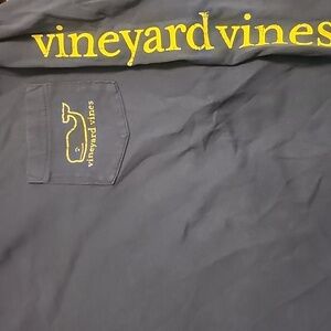 Bright blue shirt featuring Vineyard Vines logo on pocket and sleeve. Comfortable and stylish.