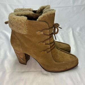 UGG Analise Lace Up Booties Women’s 10 Chestnut Brown Heeled Sheepskin Lined