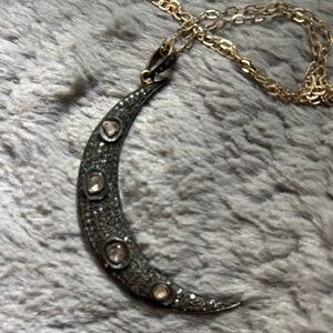 Gold Crescent Moon Necklace with Raw Natural Diamonds - Originally $850