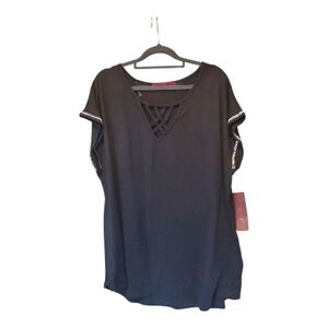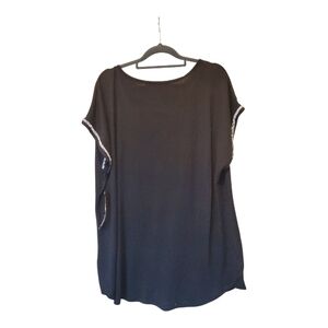 Discover elegance with this black top featuring a stylish rhinestone accent. Perfect for any occasion, it adds sophistication to your wardrobe. Stretchy fabric for comfort, size 2X. From a smoke free home .