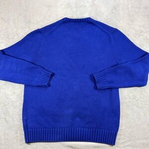 The Vintage Y2K Polo Ralph Lauren Knit Spellout Sweater in size Large is a classic piece with a solid blue color and crew neck neckline. Made from knit fabric, this pullover sweater is designed for men and perfect for various activities such as walking, riding, golf, lacrosse, racing, hiking, and running & jogging. The iconic Ralph Lauren brand adds a touch of style to this timeless wardrobe staple.