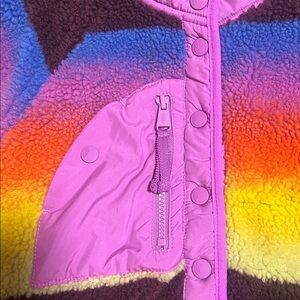 FP movement hit the slopes pullover printed fleece jacket. Size small. Worn twice in perfect condition. Beautiful sunrise print with maroon and purple detailing. Slightly oversized but fits perfect for a small or medium build. Sherpa is in perfect condition. Great for staying warm whilst looking cute in winter/fall!