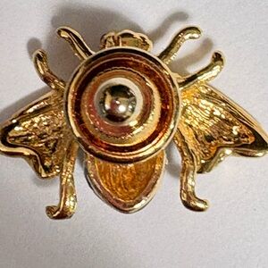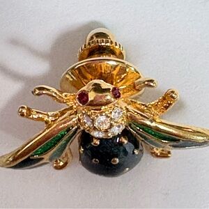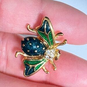 Vintage Gold tone and Green enameled fly Insect Brooch