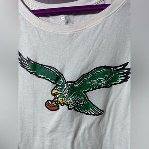Cream shirt with striking eagles graphic in front and green graphic on the sleeve Ideal for everyday style and game day wear