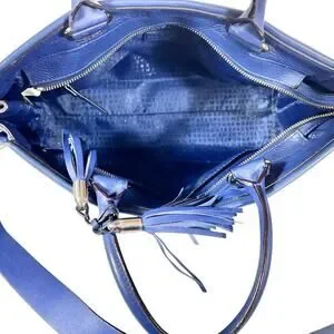 Kate Spade New York Atwood Place Larson Satchel Tassel Blue Leather Hand Bag