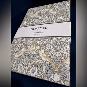 This gorgeous William Morris & Co. Journal / notebook features a removable, reusable faux leather cover printed in a yellow, blue, and beige William Morris & Co. floral and bird pattern, and includes a William Morris notebook with 200 lined pages 80g paper. 7x10”. Great gift.