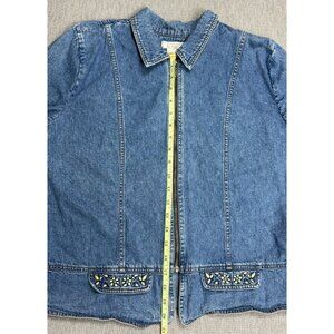 Christopher Banks Womens Blue Denim Jacket Full Zip Embroidered Size Medium