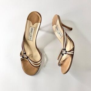 Stylish Jimmy Choo heels with elegant straps. Perfect for any occasion.