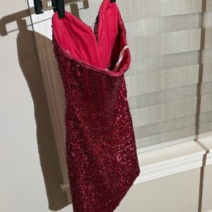Jovani Strapless Sequin Corset Mini Dress – Hot Pink / Fuchsia – Size 0
