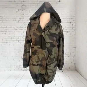 Zara Basics Camo Wind Breaker Rain Jacket in a Women's Size Small. Hooded, zip/snap closure, draw string waist, 2 front pockets.