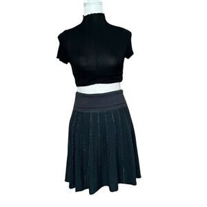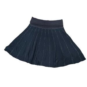 Free People women solid spark metallic dark navy blue Knit Skirt Striped sz S