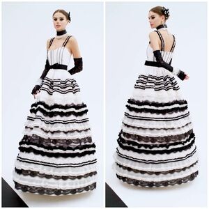 ALICE + OLIVIA DENITA BUSTIER RUFFLE GOWN