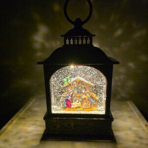 Nativity Scene Lighted Snow Globe Motion Glitter Lantern