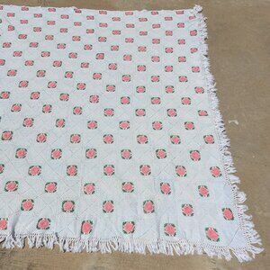 Vintage Hand Crocheted Cotton Bedspread-1954 Rose Bower Pattern-White Pink Green