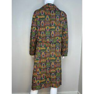 Vintage 1970s Colorful Aztec Print Trench Coat, Sears Size Large-XL
