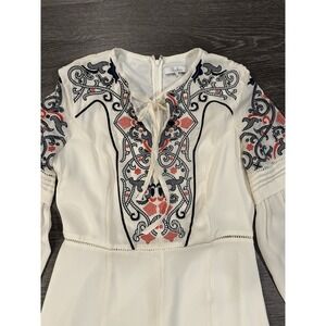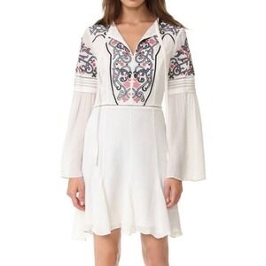 Parker Mini Dress Womens Medium Ivory Silk Embroidered Boho Bell Sleeve Whimsy
