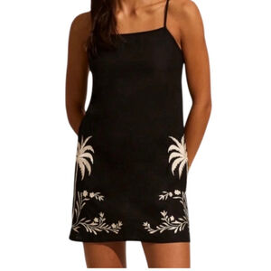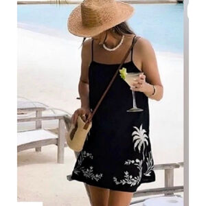 NWT Calypso St. Barth Black Linen-Blend Sundress Palm Trees Size M Sun Fun!