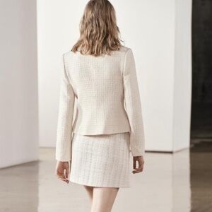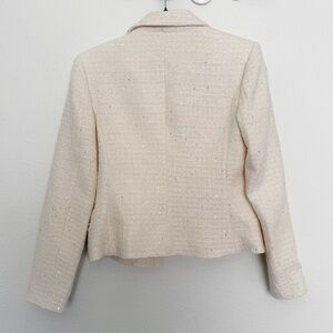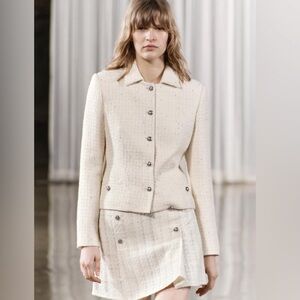 Zara NWOT Cream Textured Cotton Fitted Jacket Silver Sequin Appliqués