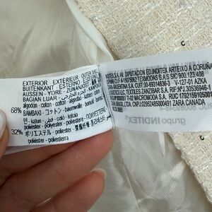 Zara NWOT Cream Textured Cotton Fitted Blazer Jacket Silver Sequin Appliqués