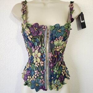 Ema Savahl 'Couture' Line Floral Embroidered Red Carpet Corset Top