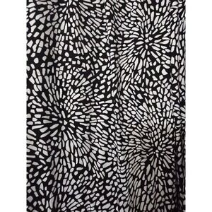 The DKNY Brushed Jersey Pull On Pants in women's size medium are a stylish and comfortable option for casual wear. Featuring a geometric pattern in black and white, these pants have a relaxed fit with a straight leg style. Made from a polyester and spandex blend, they offer stretch for added comfort and flexibility. The pants also include features such as an elastic waist, pockets, and a drawstring closure for a secure fit. Easy to care for, these machine washable pants are a versatile addition to any woman's wardrobe.