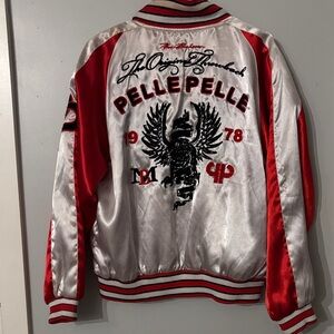 Vibrant jacket Features stylish patches and ribbed cuffs. It is a large men’s but I think it fits more like a medium. Ideal for a trendy look. Looks like satin, offers are ok