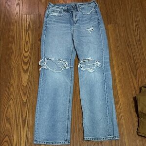 American Eagle Outfitters Low-Rise Baggy Straight Distressed Blue Jeans Size 4