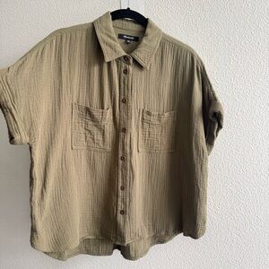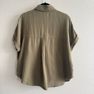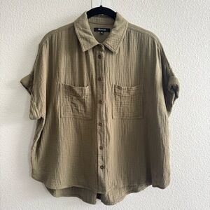 Madewell Lightspun Beachside Dolman Shirt Distant Surplus Green Boxy Crop Top