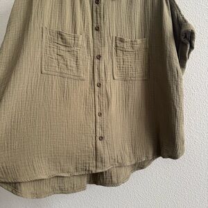 Made of supersoft and airy Lightspun double-layered cotton gauze, this boxy crop top has a high shirttail and cuffed dolman sleeves. Easy on the body, it's a fresh take on a classic button-up safari shirt, patch pockets and all.