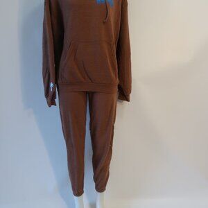 NWT Womens Aviator Nation Brown 2Pc Set Palm Tree Music Fest Hoodie Sweatpants M