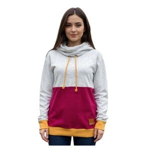 & Colorblock Cowl Neck comfy unique Sweatershirt- Gray, Pink, and Yellow size XS