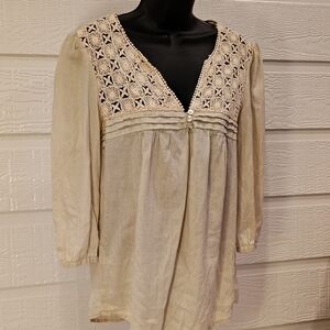 Malvin Hamburg Germany I love Linen Womens Blouse Sm Button Up Collar 100% Linen